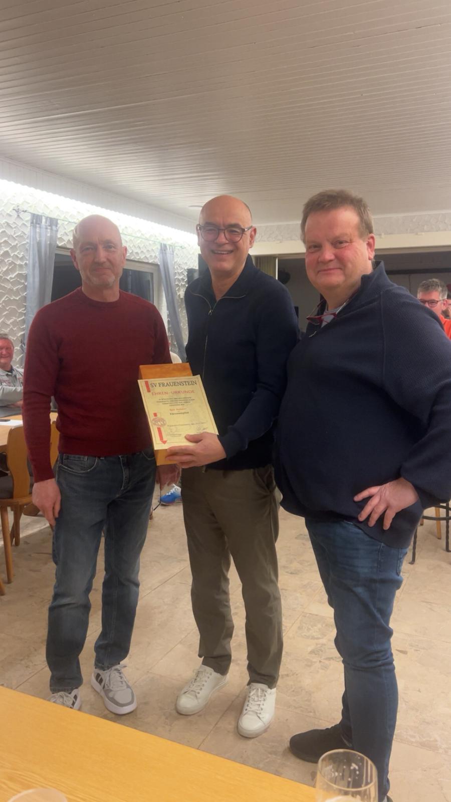 Der Vorstand des SV Frauenstein ist der Meinung, dass Igor Josimov die Ehrenmitgliedschaft absolut verdient hat und bedankte sich nochmals für seinen Einsatz zum Wohle unseres Vereins.