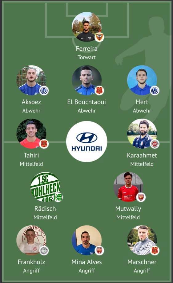 Nach dem grandiosen 5:0-Heimsieg unserer 1. Mannschaft gegen den SV 1912 Mainz-Kostheim e.V. ziehen gleich vier Spieler unseres Teams in die Elf der Woche von FuPa Wiesbaden ein. Neben Kopfballtorschütze David Rossel, der bereits zum dritten Mal im wöchentlichen All-Star-Team vertreten ist, wurden auch unser Doppeltorschütze und Vorlagengeber Kevin Blum, unser Torwart Daniel Aturcanitei sowie Mustafa Waked, der ebenfalls einmal traf, nominiert.