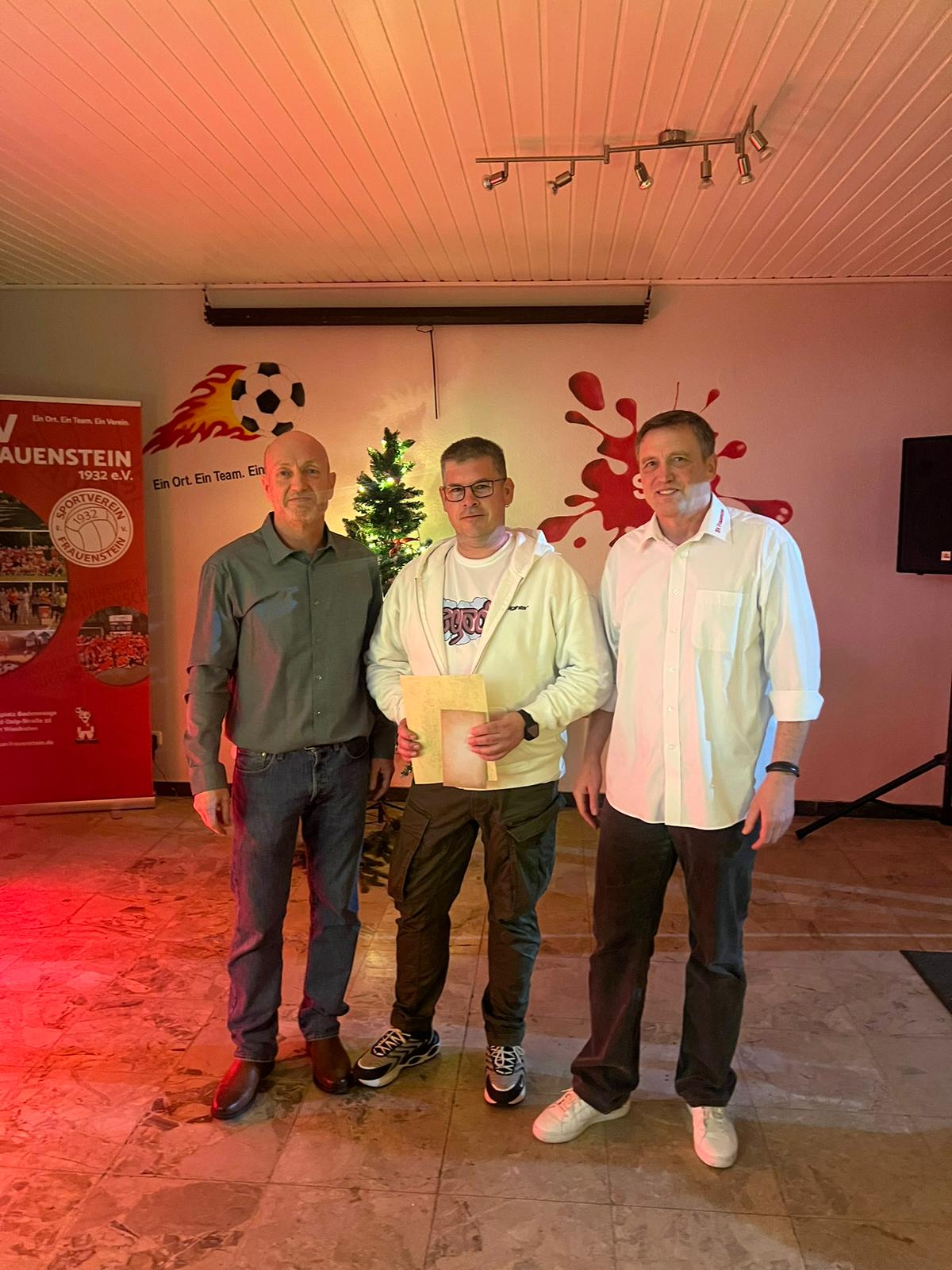 Bereits an der Weihnachtsfeier fanden die alljährlichen Ehrungen unserer Mitglieder statt. Hierbei gab es drei besondere Ehrungen für unseren Vereinsheim-Handwerker Henning Herborn sowie unsere beiden Vorstandsmitglieder Beate McMillen und Heiko Reinhardt. Henning wurde als Anerkennung für seine außergewöhnlichen, ehrenamtlichen Verdienste rund um die Sanierung der sanitären Anlagen im Erdgeschoss und in den Gästeumkleidekabinen zum Ehrenmitglied ernannt. Neben seinem dauerhaften Einsatz im Hintergrund für den SV Frauenstein 1932 e.V. führte er im vergangenen Jahr die notwendigen Fliesenlegerarbeiten zur Renovierung unserer sanitären Anlagen in Eigenregie durch. Unsere stellvertretende Finanzverwalterin Beate McMillen wurde ebenfalls zum Ehrenmitglied ernannt. Beate engagiert sich bereits seit mehr als 30 Jahren ehrenamtlich für den SVF: Zunächst als Betreuerin in den Jugendmannschaften ihres Sohnes Kevin, später als Organisatorin verschiedener Veranstaltungen (insbesondere der Rot-Weißen Nacht 2022 und 2025) und seit 2019 auch als stellvertretende Finanzverwalterin.