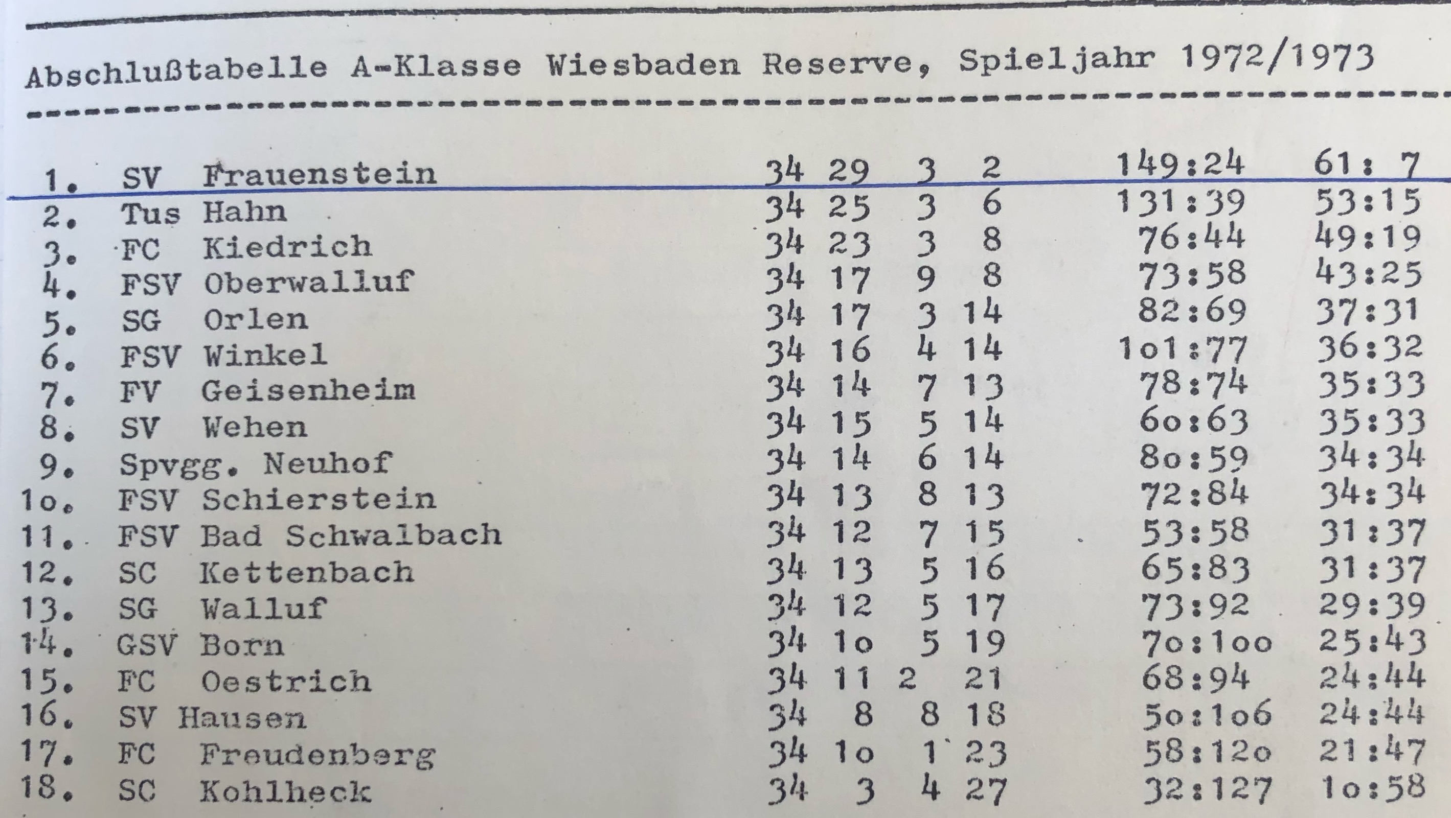 Saison 1972/1973 - A-Liga Wiesbaden Reserverunde