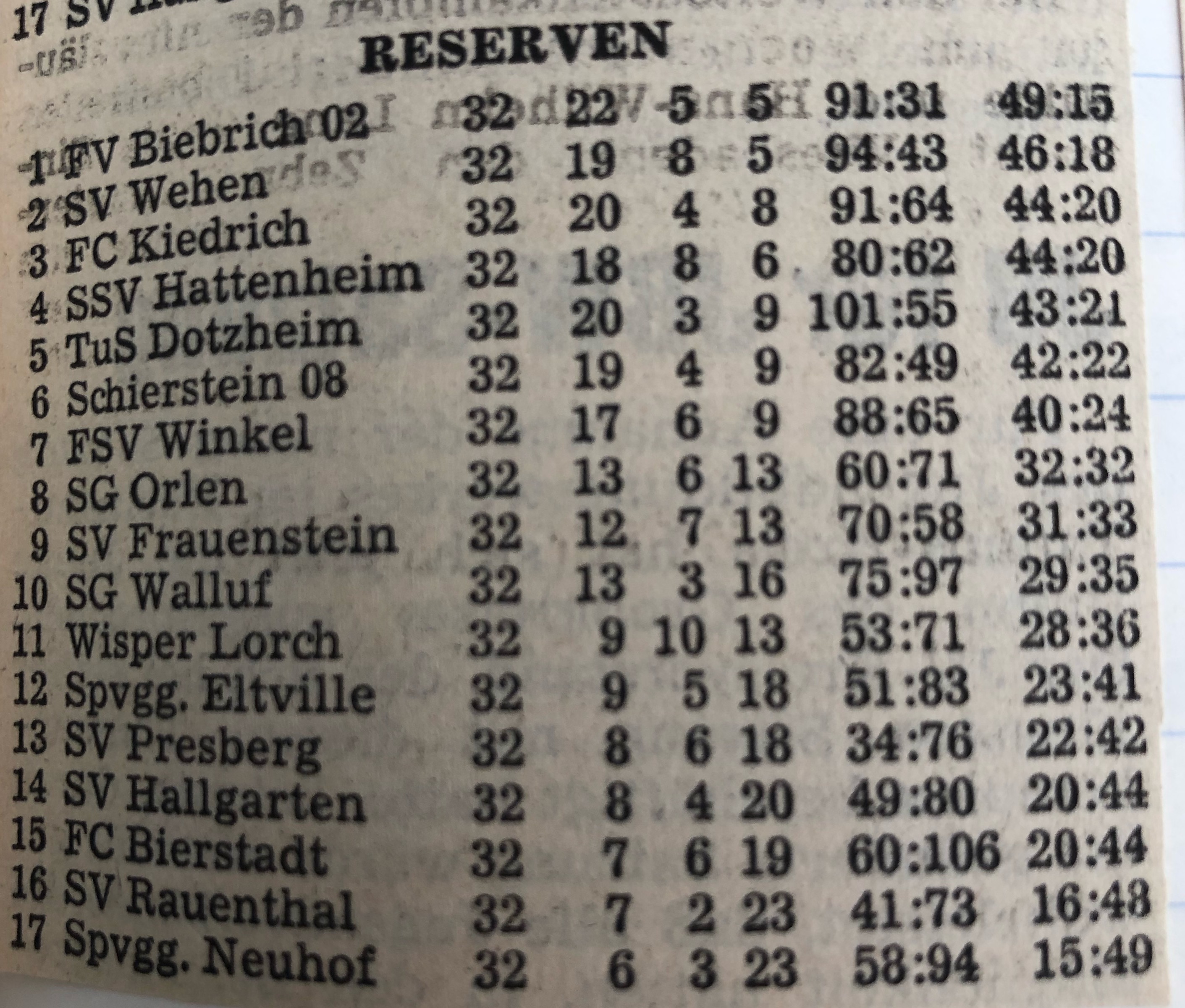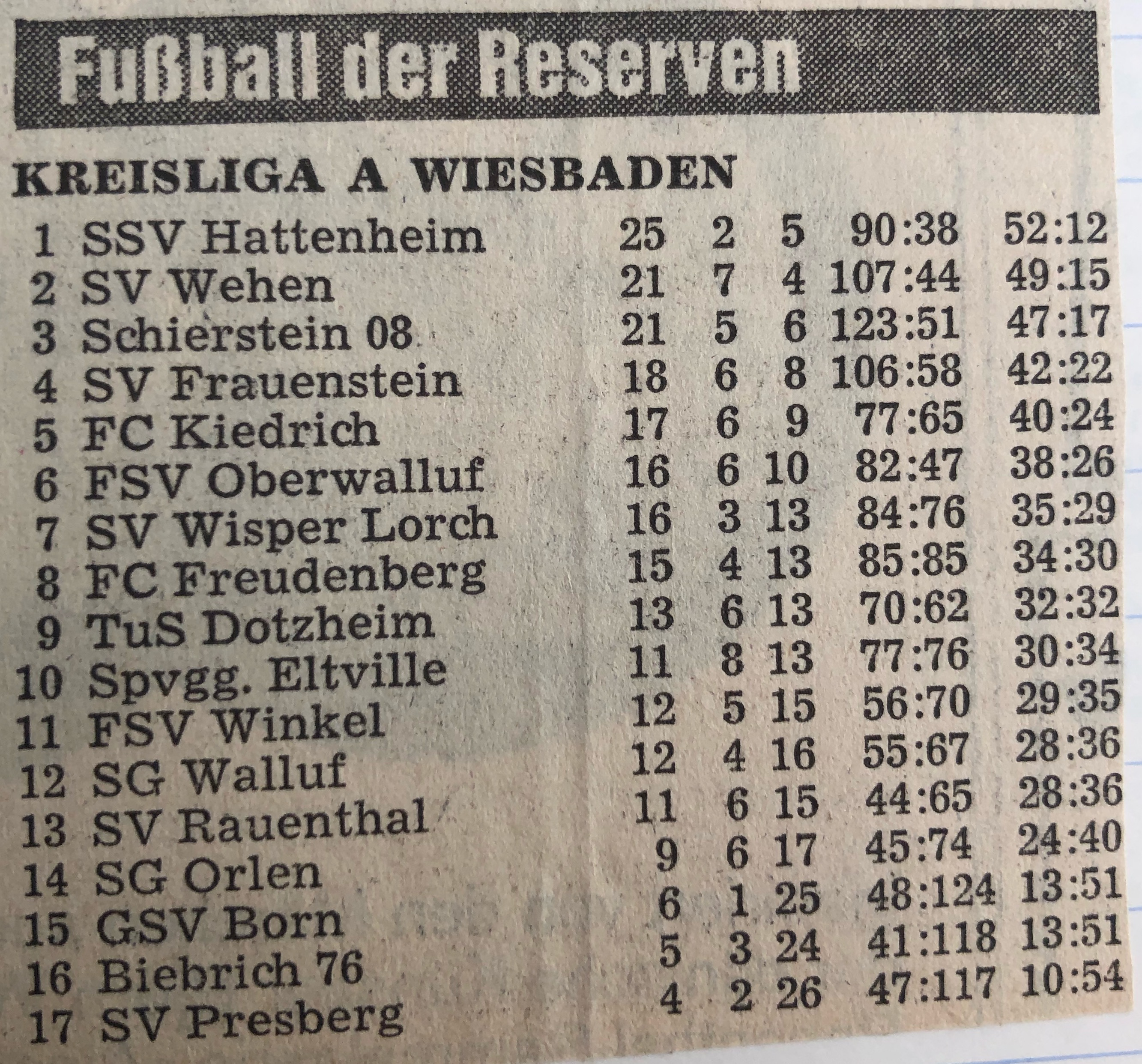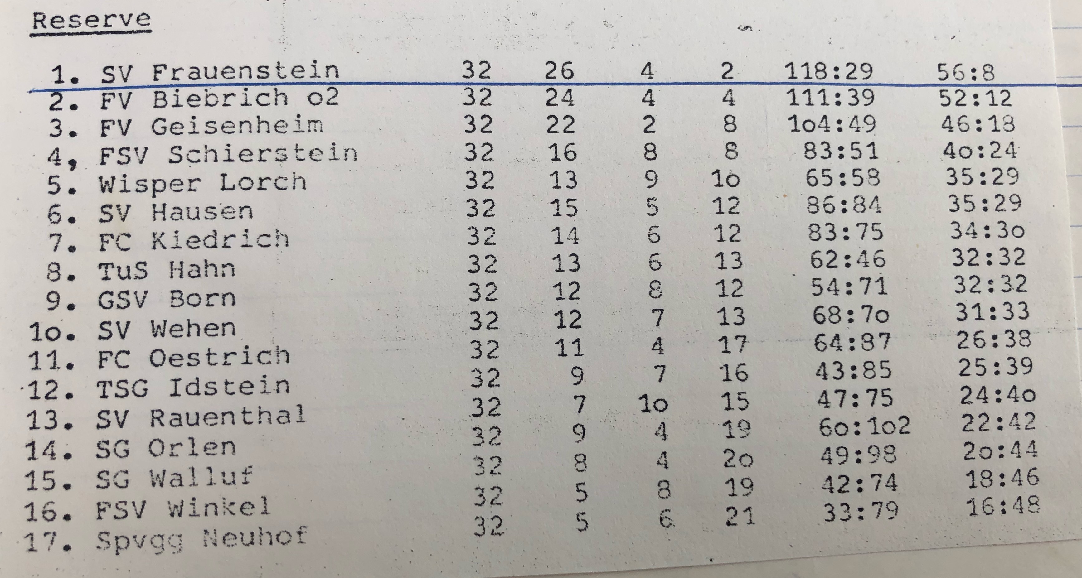 Saison 1978/1979 - A-Liga Wiesbaden Reserverunde