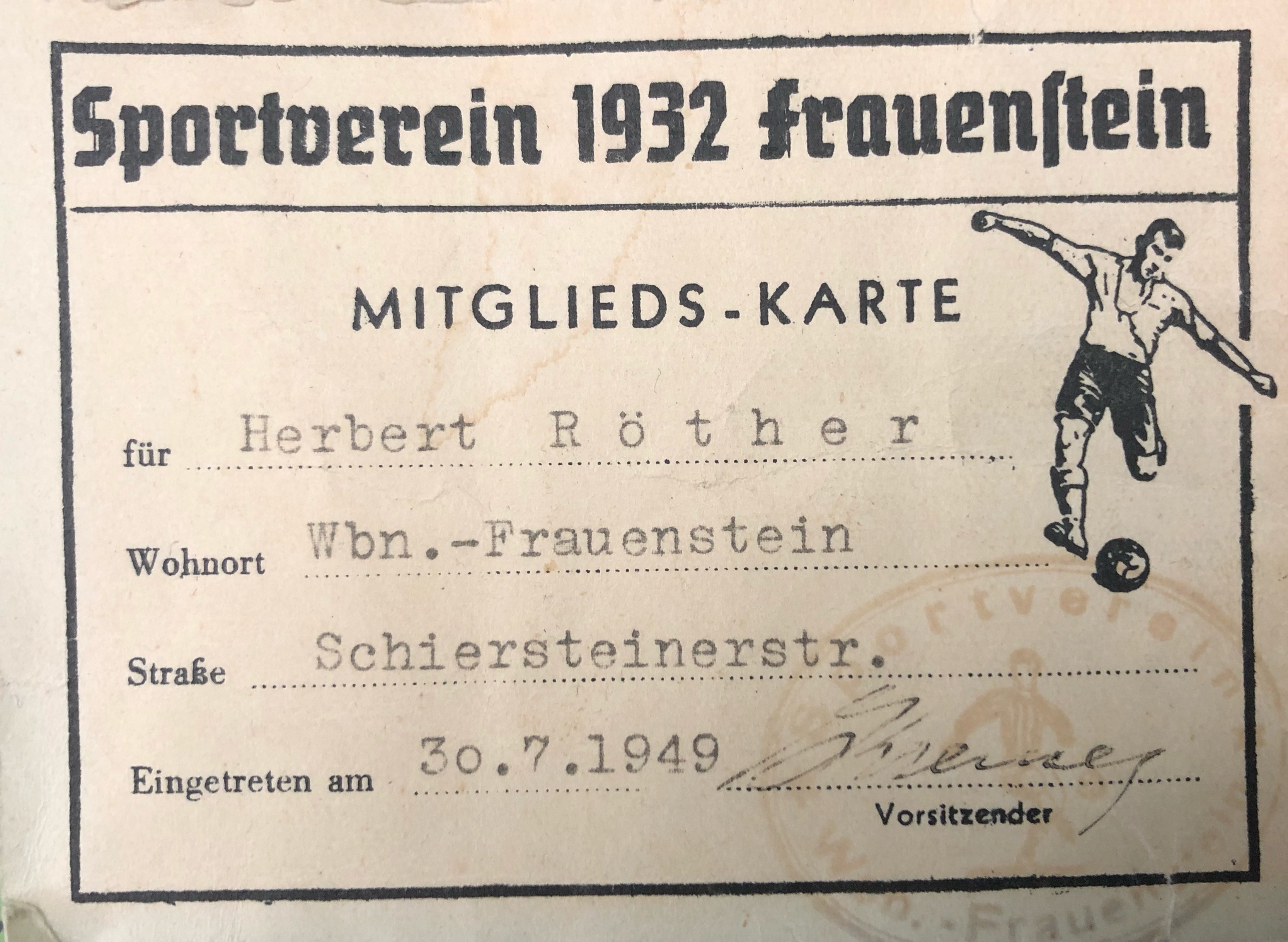 Die Fotos der heutigen Ausgabe von "Nostalgie pur!" zeigen drei Mitgliedsausweise von unserem bereits verstorbenen Mitglied Herbert Röther, unserem Geschäftsführer Stefan Ott sowie unserem AH-Abteilungsleiter Frank Baranowsky aus den Jahren 1949, 1968 und 1977. Ein Stück Zeitgeschichte des SV Frauenstein, das Einblicke in die frühere Mitgliederverwaltung gibt. Wer ähnliche Fundstücke in Zusammenhang mit unserer Vereinshistorie zuhause findet, kann sich jederzeit an uns wenden!
