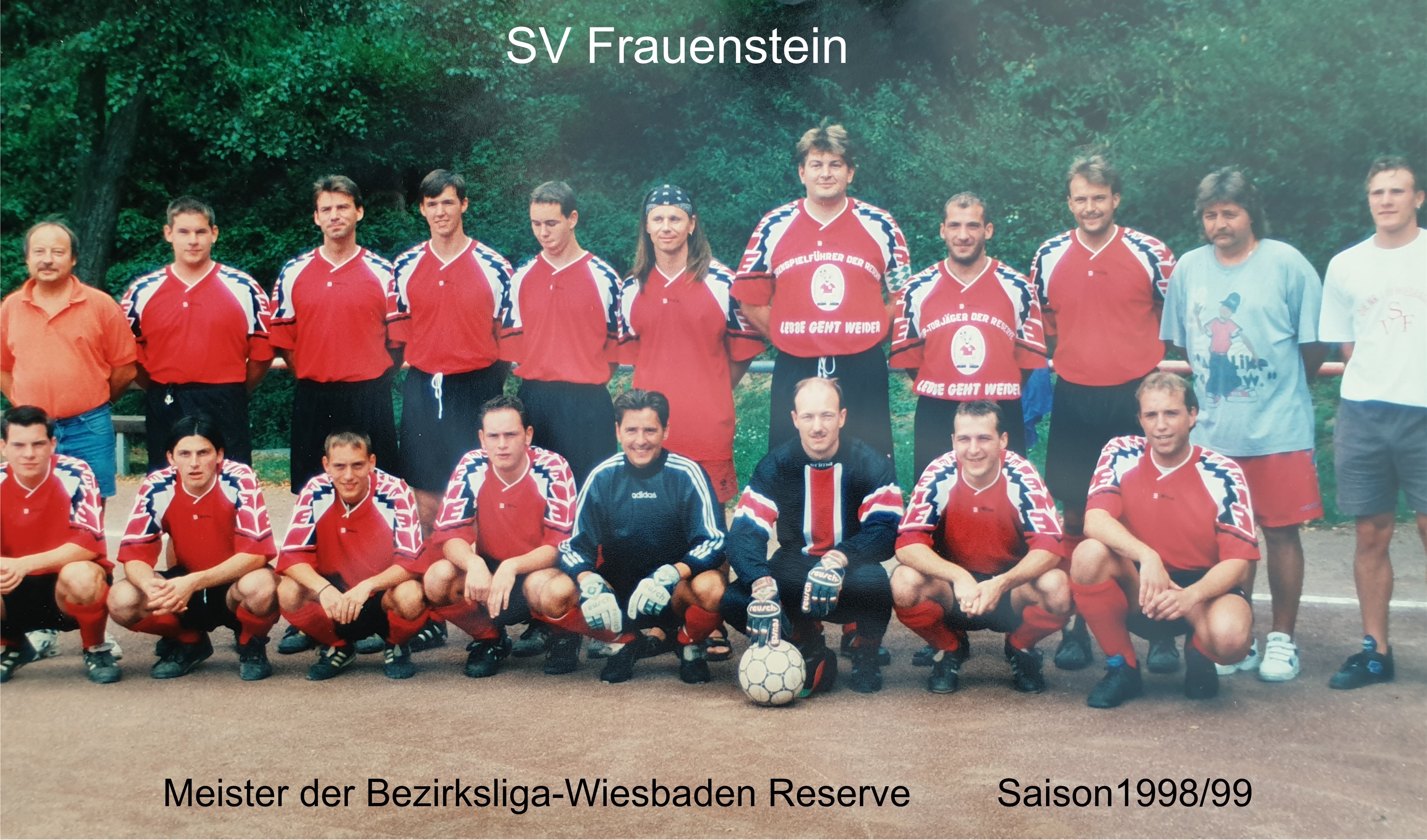 In der heutigen Ausgabe von "Nostalgie pur!" unternehmen wir eine Zeitreise zurück in die Saison 1998/1999, in der unsere Reserve die Meisterschaft in der Bezirksliga-Reserverunde feiern konnte. Bei genauerem Hinsehen dürften SVF-Experten auf dem folgenden Mannschaftsfoto einmal mehr aktuelle Spieler unserer Alten Herren identifizieren können. Wir freuen uns über die lange Verbundenheit vieler unserer Mitglieder zum SVF und hoffen auf weitere erfolgreiche Jahre unserer Aktiven in der nahen Zukunft!