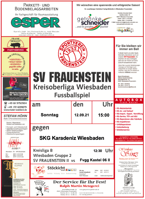 Heimspieltag: SVF vs. SKG Karadeniz Geschrieben von: Victor Röther | 09. September 2021 | Vereinsmeldungen #einorteinteaMEINverein Vorheriger Beitrag: 3G-Regeln seit letzter Woche in Kraft Zurück Nächster Beitrag: Für die 3G-Regelung wappnen Weiter