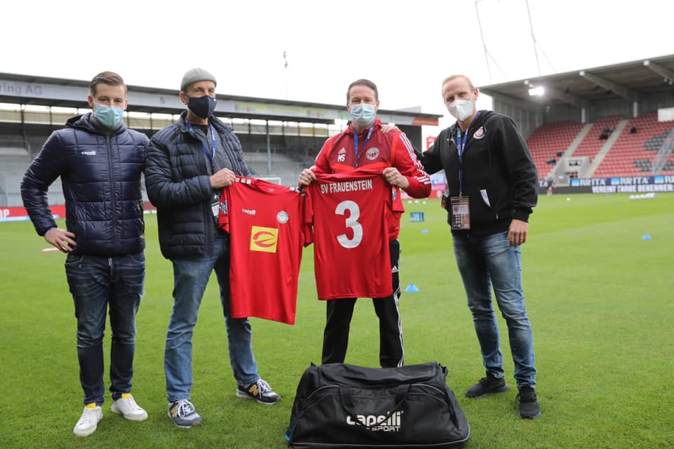 Die Übergabe fand mit unserem Jugendleiter Michael Schmitt sowie Dario Novak und Dennis Waschke, zwei Spielern unserer U19, im Stadion des SV Wehen Wiesbaden statt und war ein tolles Erlebnis für alle Beteiligten!