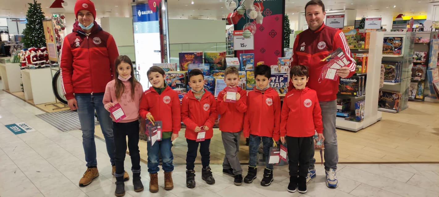 Unsere U7, die von Michael Schmitt und Johannes Reinhardt trainiert wird, hat im Zuge einer Weihnachtsaktion Geschenke für Kinder, die im Zwerg Nase Zentrum betreut werden, gekauft. Mit der Unterstützung der Spielereltern sowie unserem Ausrüster Meier Textildruck und unserem Sponsor Walter Nies GmbH kamen insgesamt 300 Euro zusammen, um einige Zwergenwünsche erfüllen zu können.