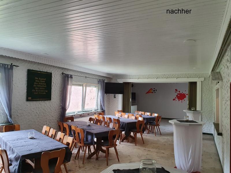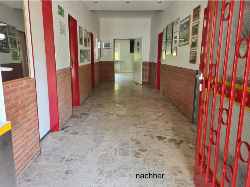 langsam kehrt das gesellschaftliche Leben zurück. Auch beim uns im Verein haben zuerst die Jugend- und nun die Aktiven der 1. & 2. Mannschaft und auch die Alten Herren den Trainingsbetrieb wieder aufgenommen. Die Freude ist groß endlich wieder Leben auf unserer schönen Sportanlage zu haben. Die fußballfreie Zeit seit November letzten Jahres haben wir genutzt, um weitere Renovierungsarbeiten in unserem Vereinsheim durchzuführen. Nachdem bereits im Sommer 2020 der Flur im 1. OG und auch unsere Grillhütte renoviert wurden, haben wir nun seit November den Schankbereich in der Küche, den Flur im EG und auch unseren großen Gastraum einer größeren Renovierung unterzogen.
