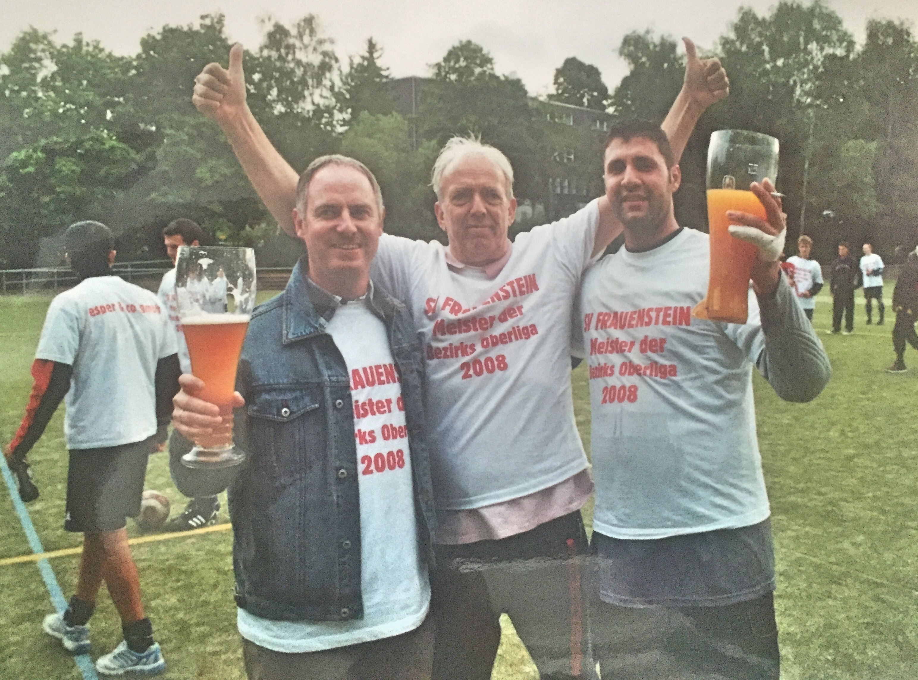 Wir gratulieren unserem langjährigen Spielausschussvorsitzenden Wolfgang Flöck herzlich zu seinem 75. Geburtstag und wünschen ihm alles Gute sowie viel Glück und Gesundheit für die kommenden Lebensjahre! Wolfgang Flöck prägte als sportlicher Leiter zwischen 1998 und 2009 die erfolgreichste Ära unserer Vereinshistorie, in der unsere 1. Mannschaft als Meister der Bezirksoberliga Wiesbaden 2008 bis in die Verbandsliga Hessen Mitte aufsteigen konnte. Auch unsere Reserve profitierte von dem allgemeinen Aufschwung der Aktiven und konnte bis in die Kreisoberliga vordringen. Zusätzlich zog das damalige Team der 1. Mannschaft nach dem Kreis- und Regionalpokalsieg 2009 zum bisher einzigen Mal in den Hessenpokal ein, wo im Viertelfinale gegen den SV Buchonia Flieden Endstation war. Ein Highlight war für Wolfgang Flöck dabei die Auslosung des Viertelfinalspiels, die in der DFB-Zentrale in Frankfurt mit Fußballgrößen wie Andreas Möller und Dieter Müller stattfand, die zu dieser Zeit als Sportdirektor und Präsident der Offenbacher Kickers tätig waren. Während seiner über zehnjährigen Amtszeit arbeitete Wolfgang Flöck mit lediglich zwei Trainern (Michael Horn und Werner Orf) erfolgreich zusammen und eilte mit unseren aktiven Teams von Erfolg zu Erfolg, bevor er Ende 2009 seinen Rücktritt erklärte. Auf dem folgenden Foto ist Wolfgang Flöck zusammen mit unserem ehemaligen Jugendleiter Andreas Bauer und unserem damaligen Torhüter Yasar Akyol bei der Meisterfeier unserer 1. Mannschaft im Jahr 2008 zu sehen.