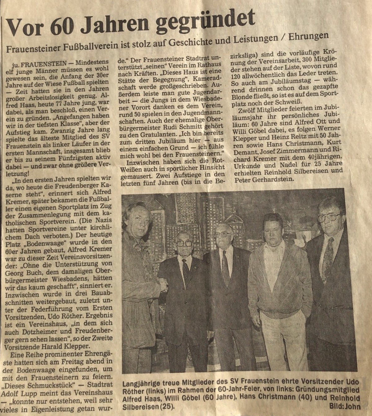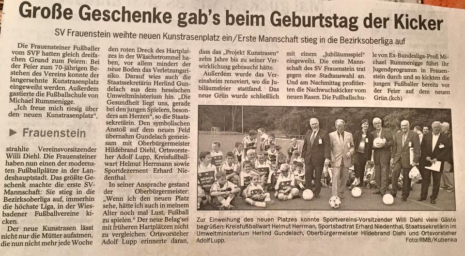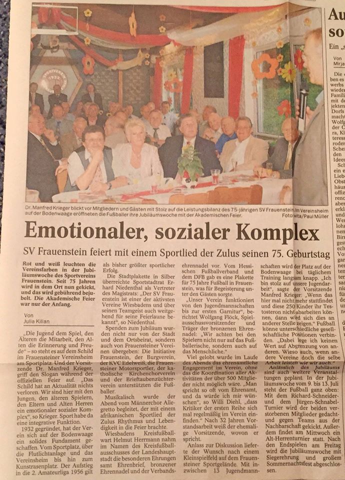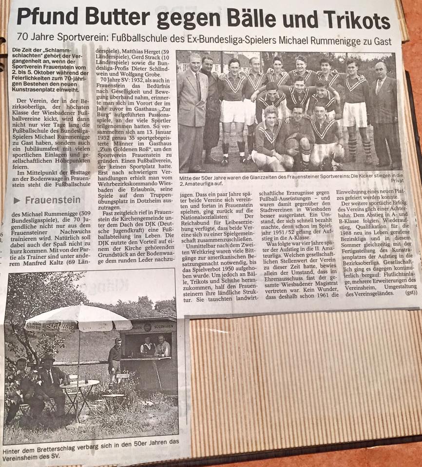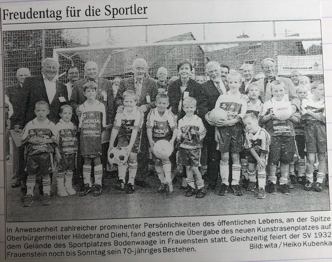 Heute vor genau 90 Jahren wurde der SV Frauenstein 1932 e.V. im Gasthaus "Zum goldenen Ross" von 35 Mitgliedern gegründet. Wir blicken daher zurück auf die Zeitungsberichte und Hefte der bisherigen Jubiläen, welche unsere Vereinsgeschichte passend zusammenfassen. Einen Überblick über die gesamte Vereinshistorie findet ihr unter dem Reiter "Vereinschronologie". Welche Erinnerungen verbindet ihr bis heute mit dem SVF und seiner bisherigen Geschichte?