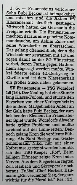 Bei der Durchsicht unseres Archivs ist uns ein weiteres Prunkstück in die Hände gefallen. Erkennt ihr neben unserem Bubi Becker, der in der Winterpause 1991/1992 als Spieler an die Bodenwaage zurückkehrte, zwei heutige Vorstandsmitglieder auf dem Bild aus dem Jahr 1992 wieder?