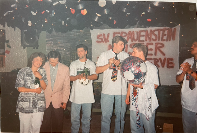 In der 125. Ausgabe von "Nostalgie pur!" schauen wir heute zurück auf die Meisterschaft unserer Reserve aus dem Jahr 1994, an der einige unserer heutigen AH-Spieler beteiligt waren. Nach dem Aufstieg unserer 1. Mannschaft im Jahr 1991 ging unsere 2. Mannschaft erstmals in der Reserverunde der Bezirksoberliga Wiesbaden an den Start und konnte in der Saison 1993/1994 mit einem Torverhältnis von 99:45 und 50:18 Punkten den bis heute einzigen Meistertitel in dieser Spielklasse perfekt machen. Welche Erinnerungen habt ihr an diese Spielzeit und die sich anschließenden Feierlichkeiten im Frauensteiner Vereinsheim?