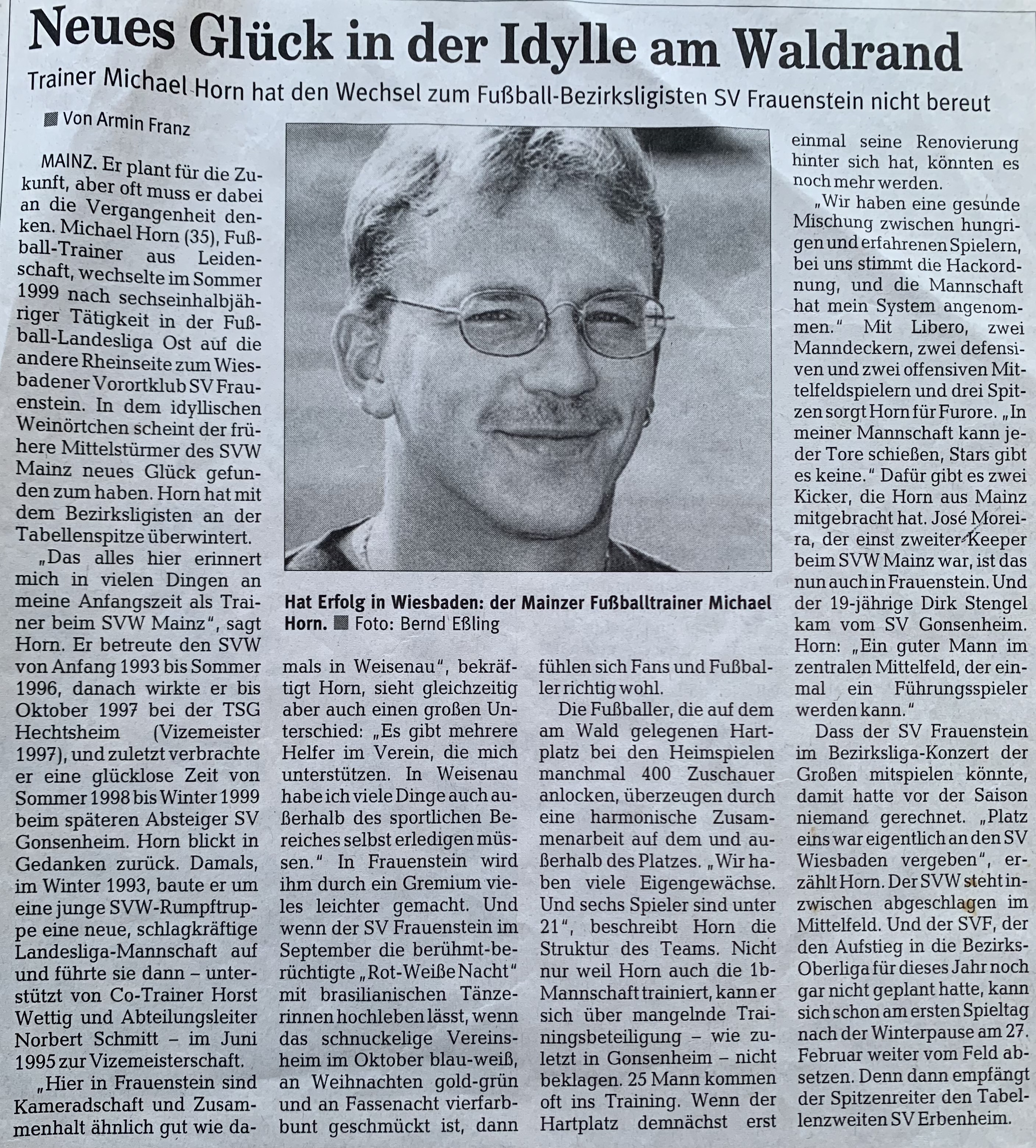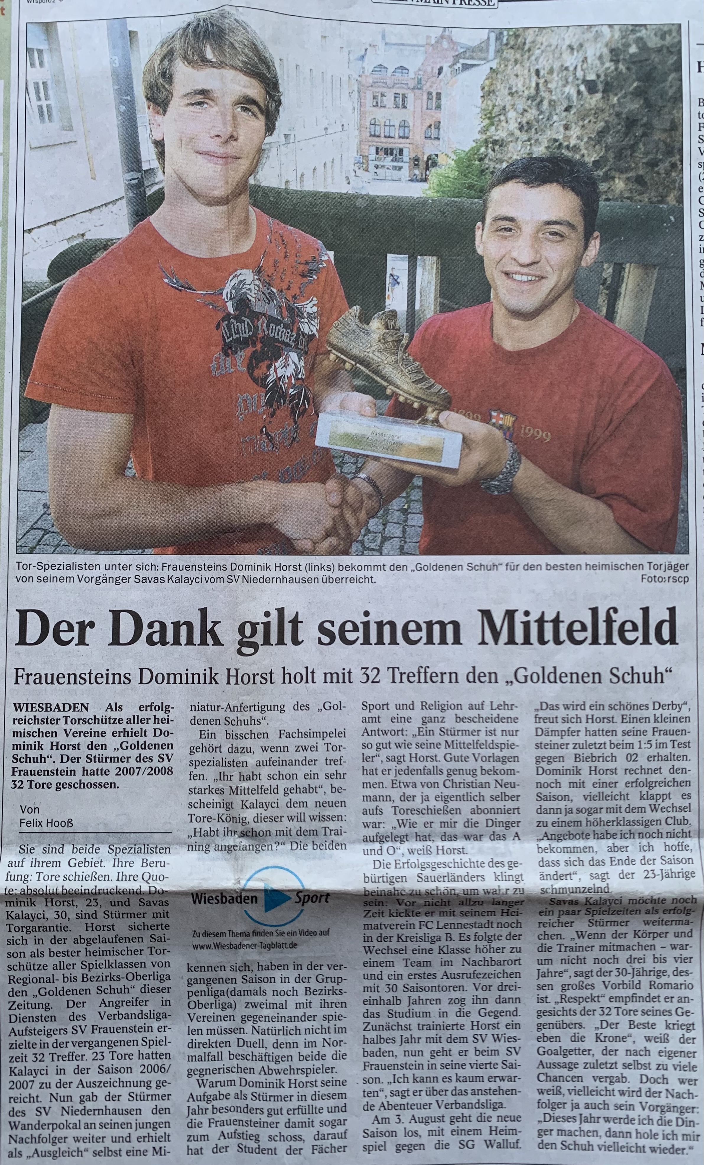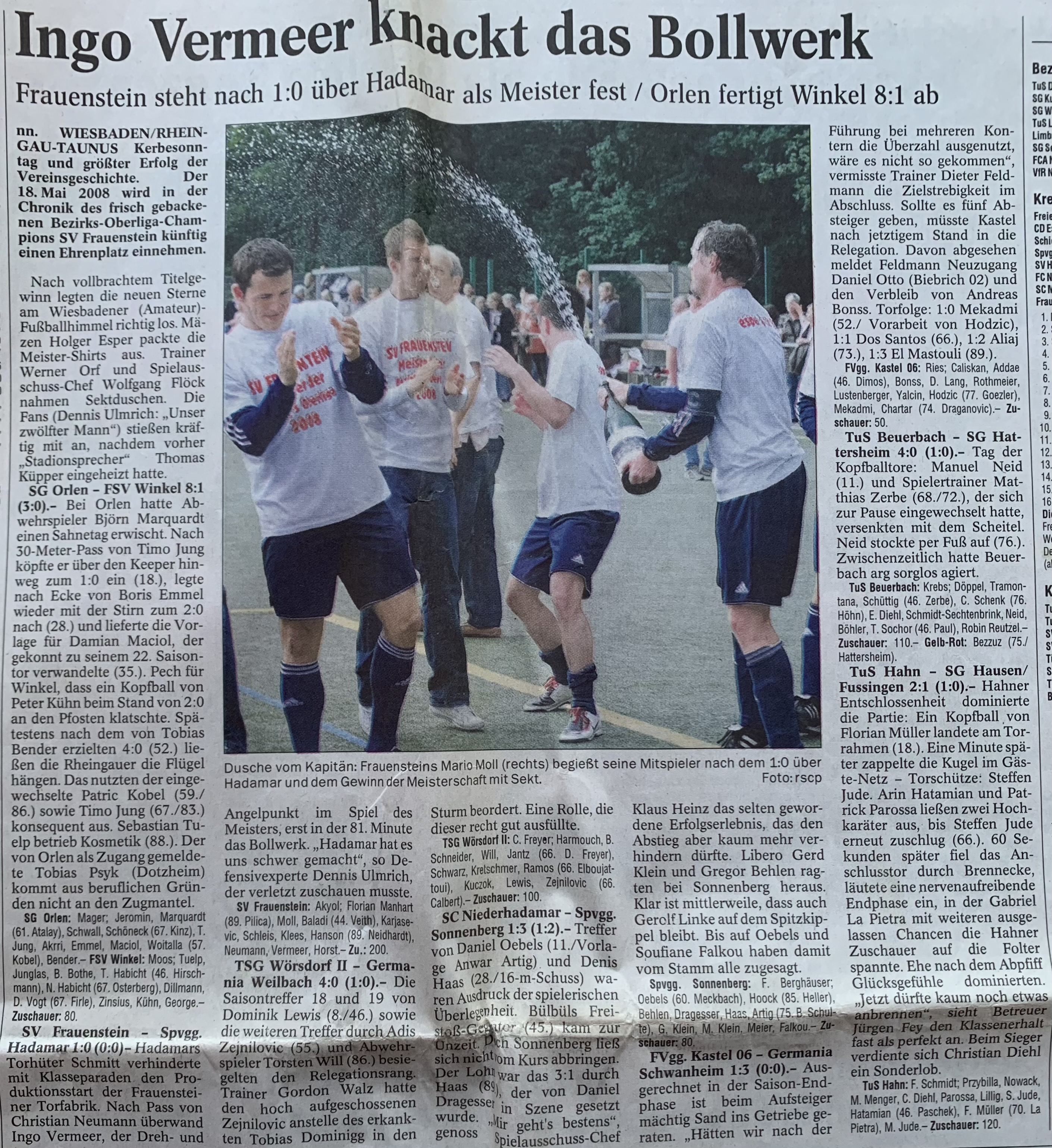Ende März erreichten uns einige Zeitungsberichte von unserem langjährigen Spielausschussvorsitzenden Wolfgang Flöck. Wolfgang Flöck übernahm den Posten des Spielausschusses Ende der 1990er Jahre von Herbert Baumann und prägte bis zu seinem Rücktritt im Jahr 2009 die erfolgreichste Ära der Vereinsgeschichte entscheidend mit. Nach dem Aufstieg unserer 1. Mannschaft in die Bezirksoberliga im Jahr 2002 unter Trainer Michael Horn, folgte nach der Verpflichtung von Werner Orf die bis heute erfolgreichste Zeit unserer Vereinshistorie. Gekrönt wurde das ehrenamtliche Engagement von Wolfgang Flöck durch die Doppelmeisterschaft unserer Aktiven im Jahr 2004 sowie durch die Meisterschaft unserer 1. Mannschaft in der Bezirksoberliga Wiesbaden und dem damit verbundenen Aufstieg in die Verbandsliga Hessen Mitte im Jahr 2008. Zusätzlich profitierte auch unsere 2. Mannschaft von diesem allgemeinen Aufschwung innerhalb des Vereins und konnte zwischenzeitlich bis in die Kreisoberliga Wiesbaden aufsteigen. Auf den Fotos sind einige Zeitungsberichte aus der Zeit von 1999 - 2008 zu sehen, die einen Einblick in die einmaligen Erfolge des SVF geben, an denen Wolfgang Flöck als Manager und Macher einen maßgeblichen Anteil hatte.