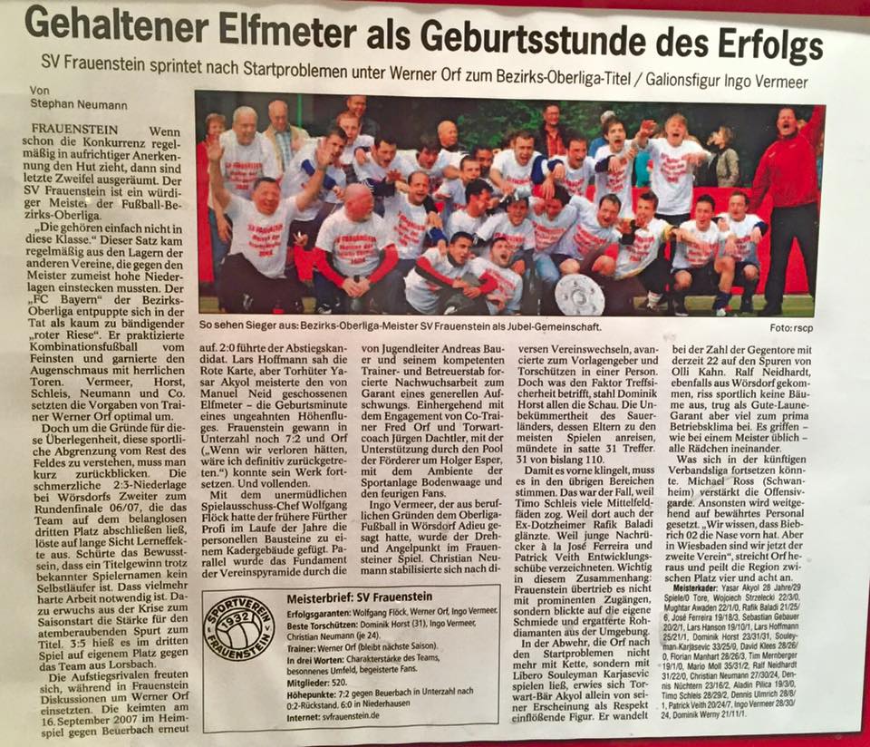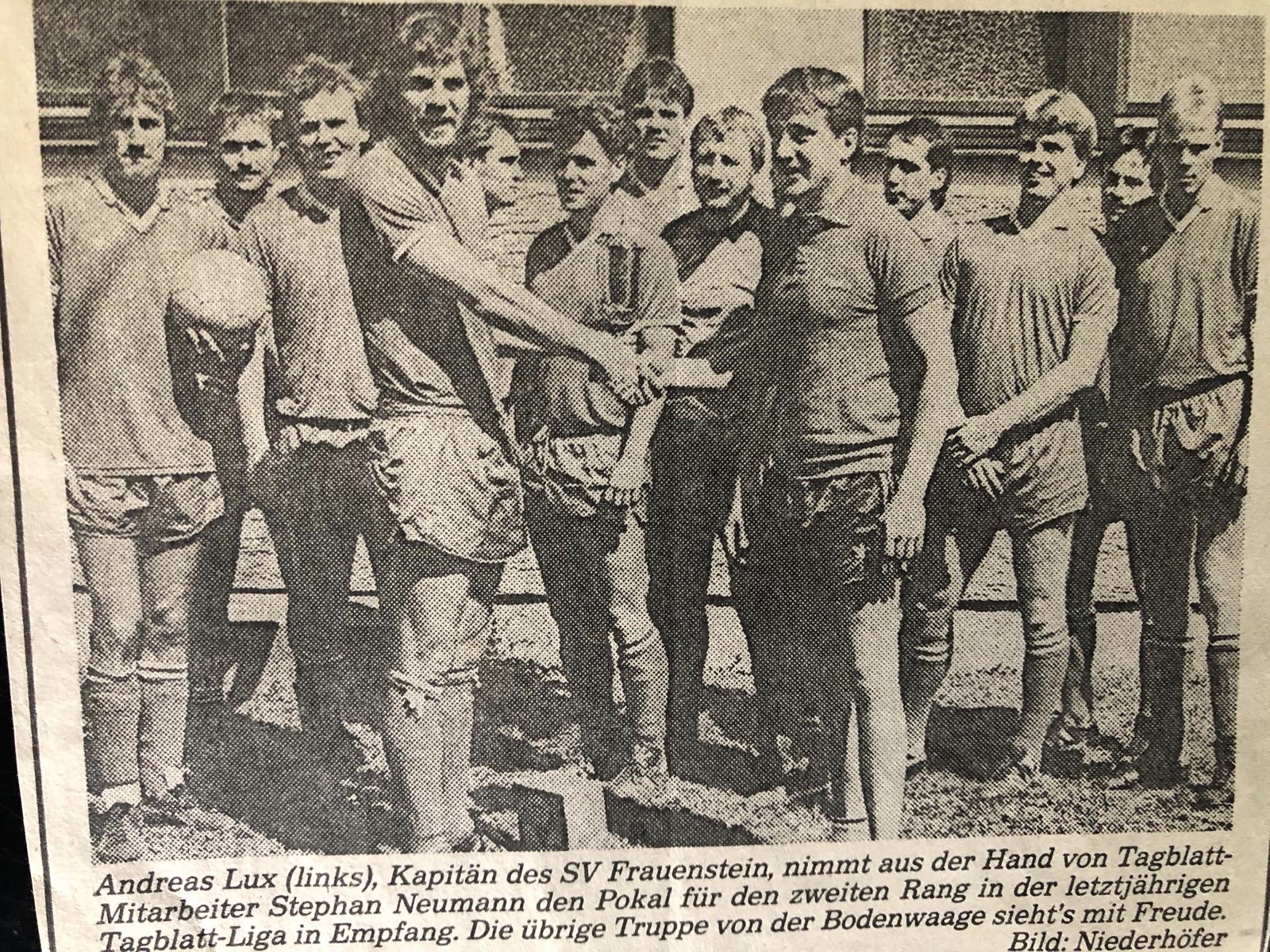Heute erreichten uns mehrere Fotos unseres Frauensteiner Vereinsurgesteins Stefan Schneider. Stefan konnte nach seiner Zeit in der SVF-Jugend Ende der 80er und Anfang der 90er Jahre mit der 1. Mannschaft große Erfolge feiern und von der B-Klasse bis in die Bezirksoberliga aufsteigen. Er ist dem Verein trotz seines Wohnortwechsels bis heute verbunden geblieben und hat unserer A-Jugend Ende 2019 anlässlich seiner Ehrung zur 50-jährigen Mitgliedschaft einen Trikotsatz gesponsert.