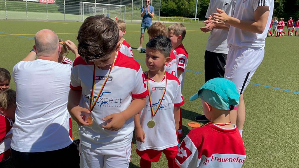Unsere Kleinsten ließen am vergangenen Samstag gemeinsam mit ihren Trainern und Eltern die Spielzeit 2021/2022 ausklingen und genossen das hervorragende Wetter auf der Bodenwaage. Nach einer Partie gegen die Bambinis der Spvgg Eltville erhielten alle Spieler eine Medaille, bevor gemeinsam gegrillt wurde. Wir freuen uns über den guten Zusammenhalt in dieser starken Truppe und wünschen allen Spielern viel Erfolg für die kommende Saison.