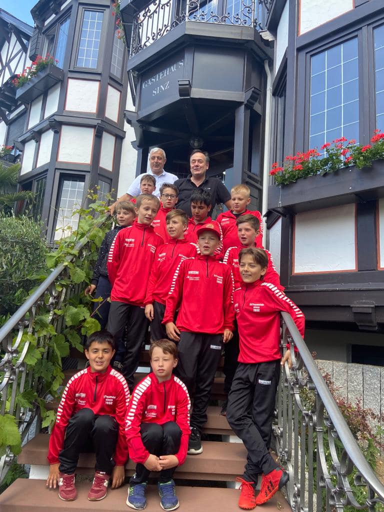Unsere E-Junioren gewannen ihr letztes Saisonspiel heute mit 0:16 gegen den SV Blau-Gelb Wiesbaden und knackten damit die magische 100-Tore-Marke. Wir gratulieren herzlich zu einer grandiosen Spielzeit, die unsere U11 mit 45 Punkten und 104:22 Toren auf dem zweiten Tabellenplatz abschließen konnte und freuen uns auf die kommende Spielzeit dieser erfolgreichen Truppe in der D-Junioren-Kreisliga. Gefeiert wurde die Vizemeisterschaf gemeinsam mit den Eltern und Trainern (Michael Saur und Stefan Höhn) im Weinhaus Sinz, sodass die Mannschaft die Saison gebührend ausklingen lassen konnte. Ein besonderer Dank gilt Klaus Sinz und Spielervater Toni, die unsere Jungs zum Essen eingeladen haben - mit dieser grandiosen Unterstützung freuen wir uns auf eine Fortsetzung der Erfolgsserie unserer U11 in der kommenden Spielzeit.