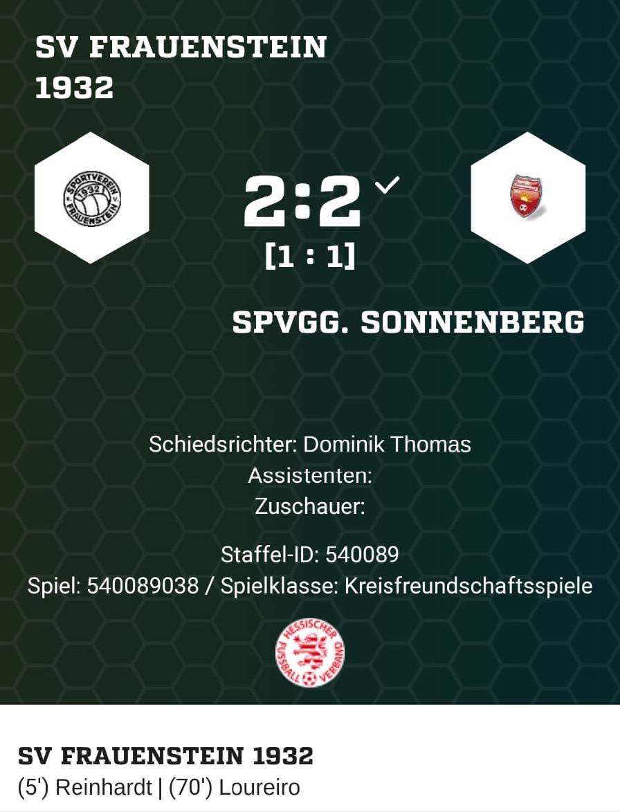 SV Frauenstein 1932 e.V. : Spvgg. 1919 Sonnenberg 2:2 (1:1)