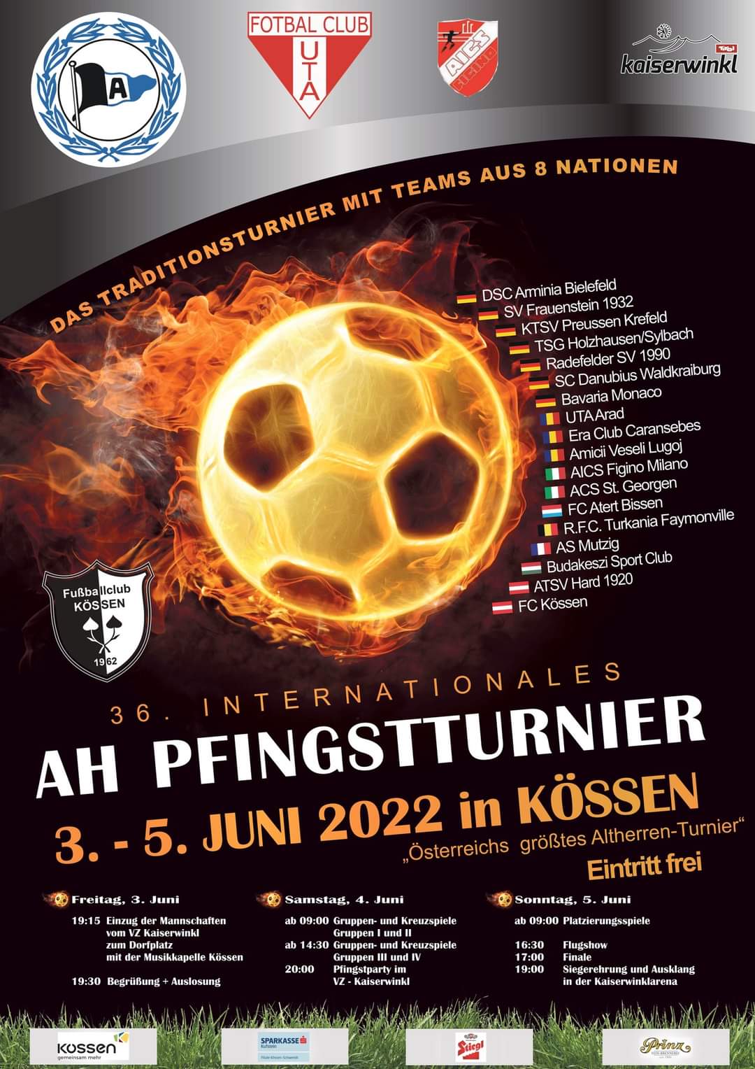 Nach zwei Jahren Corona-Pause hat das Warten unserer Alten Herren auf das Highlight des Jahres endlich ein Ende... Heute machen sich unsere Oldies auf den Weg zum 36. internationalen AH-Pfingstturnier des FC Kössen! Was meint ihr? Können unsere Männer den Erfolg aus dem Jahr 2008 wiederholen und zum zweiten Mal bis ins Finale vordringen? Wir wünschen unserer AH-Truppe auf jeden Fall viel Erfolg und freuen uns auf sensationelle Bilder aus Österreich!